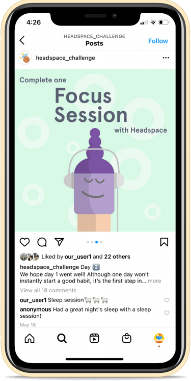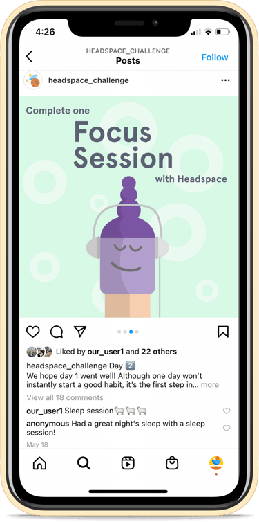 Unlike most school projects, we worked with clients. I enjoyed determining how to balance business goals with design practices. I'm excited that our findings will be used by the Headspace team and that our social media challenge created a positive impact for our followers. This project was rewarding from both a design and social impact standpoint, and I'm proud of the work that was accomplished.