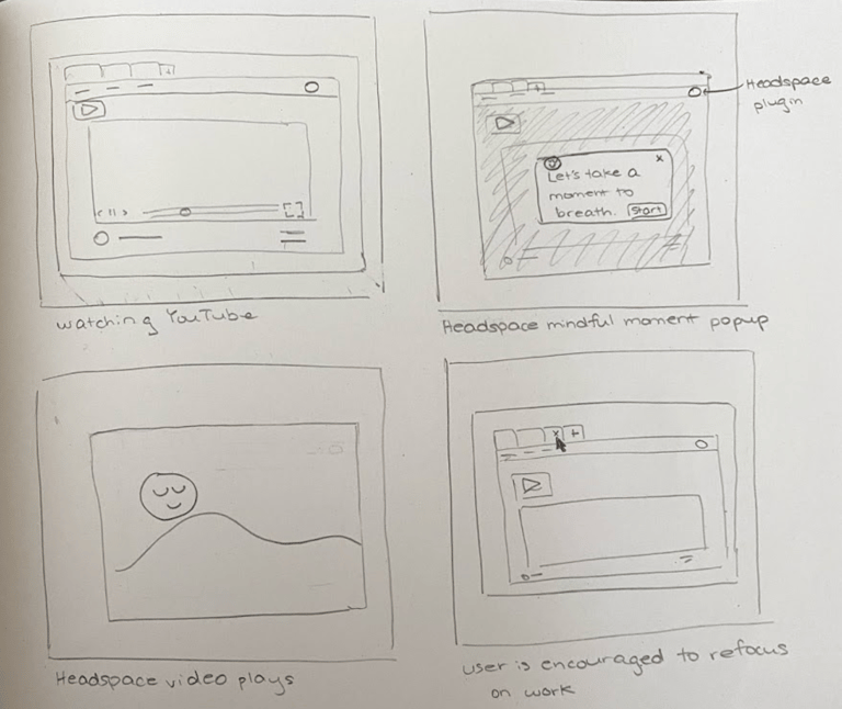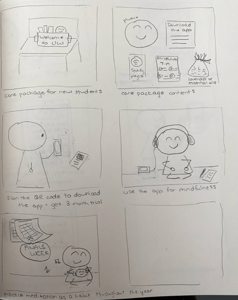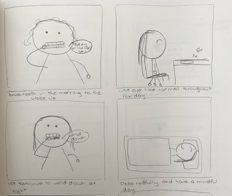 my storyboards of both digital and physical design solutions