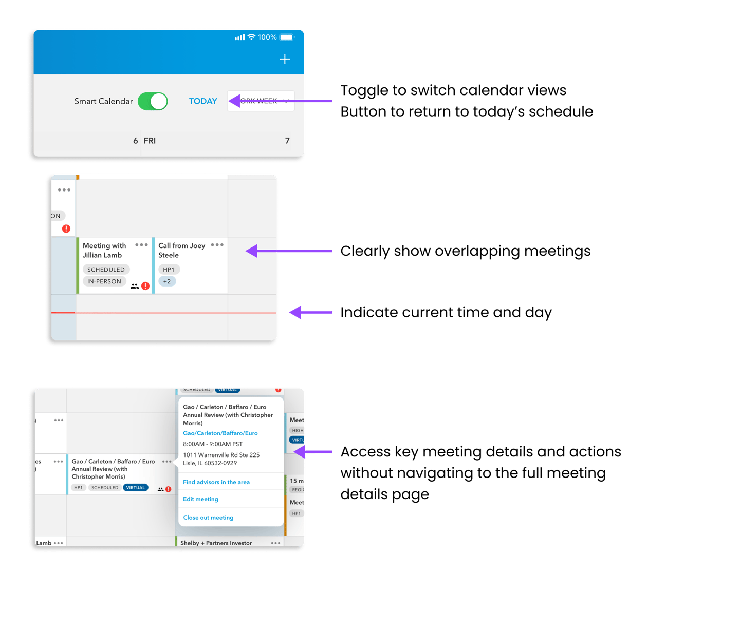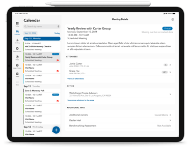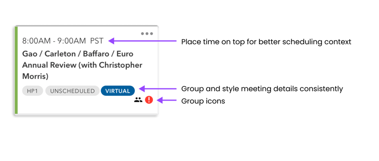 Display important meeting details, like advisor priority level and type of meeting