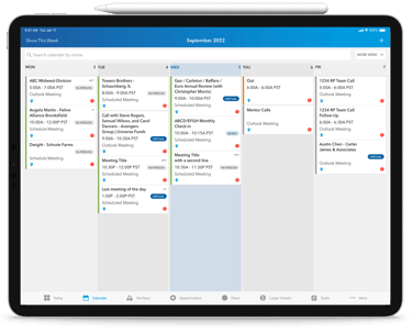 Wholesalers can't easily schedule new meetings, view meeting details, or compare calendars while on the road.