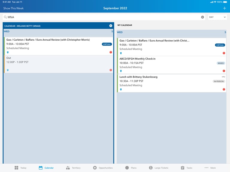 Leverage the new contextual view so that users can see calendars side by side